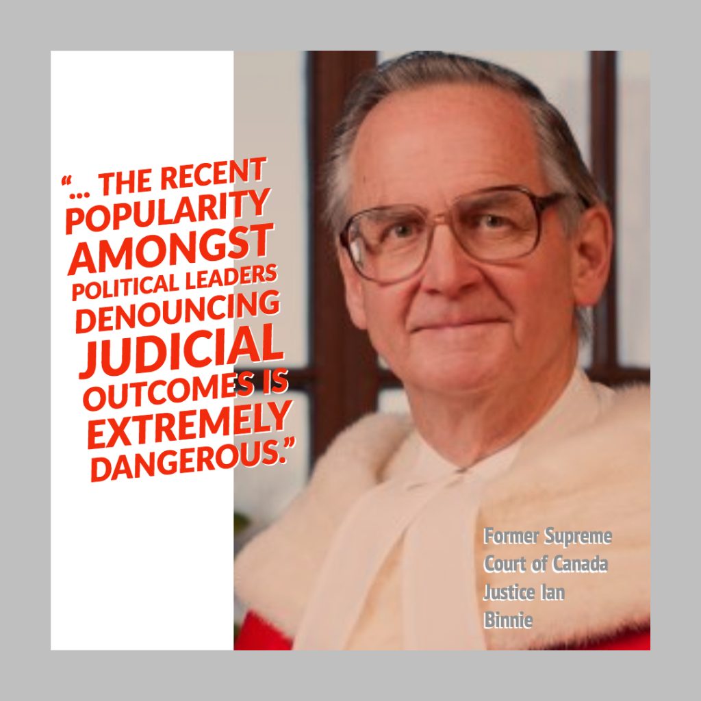Two MPs who defied a judicial order using the excuse of “social justice” forgot their role as political leaders. Ian Binnie spoke out on the practice at the Law Society of BC’s Rule of Law lecture.