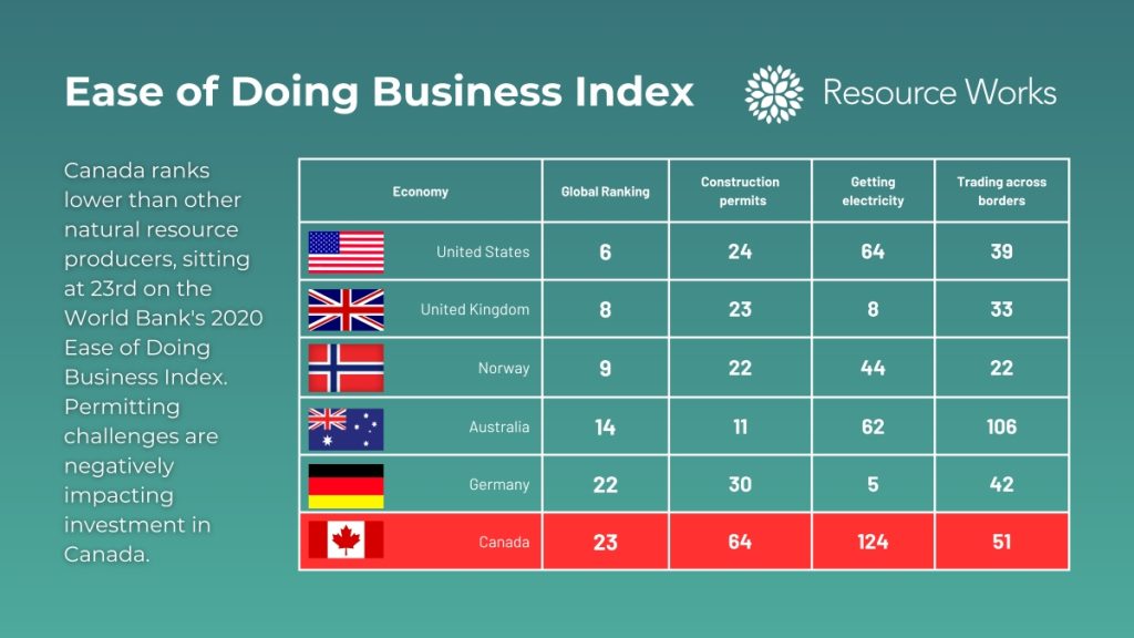 Remarkably, it takes about 18 years for Canada to build a single mine. This sort of regulatory sclerosis explains why Canada is only in the 23rd place when it comes to global ease of doing business and falls to 64th when it comes to construction permits.