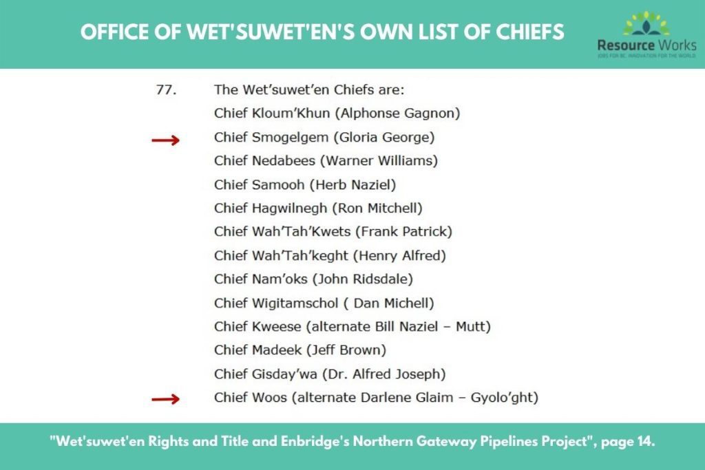 It’s not as if George and Glaim’s claim to their titles was already in question. Back in 2011, the OW recognized George (and fellow WMC leader Darlene Glaim) as hereditary chiefs. At the time, they joined their fellow hereditaries in opposition to Enbridge’s Northern Gateway pipeline project. It appears that the OW only questioned the women’s titles when they joined the WMC and began considering CGL’s natural gas pipeline.
