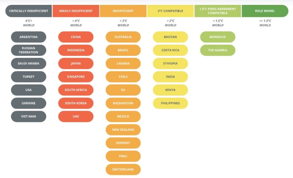 Another six have met Paris goals that would mean a 2°C increase: Bhutan, Costa Rica, Ethiopia, India, Kenya and the Philippines.