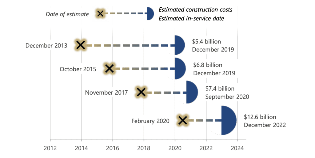 That there is a new round afoot of TMX skepticism should hardly come as a surprise. Pressure groups representing a tiny fraction of the Canadian voting public were able to leverage their marketing tactics into regulatory delays, political chaos and investment fright, resulting in a massive return on their investment of disruption dollars. Check out this chart from the Parliamentary Budget Officer (PBO) in a Dec. 8, 2020 report: