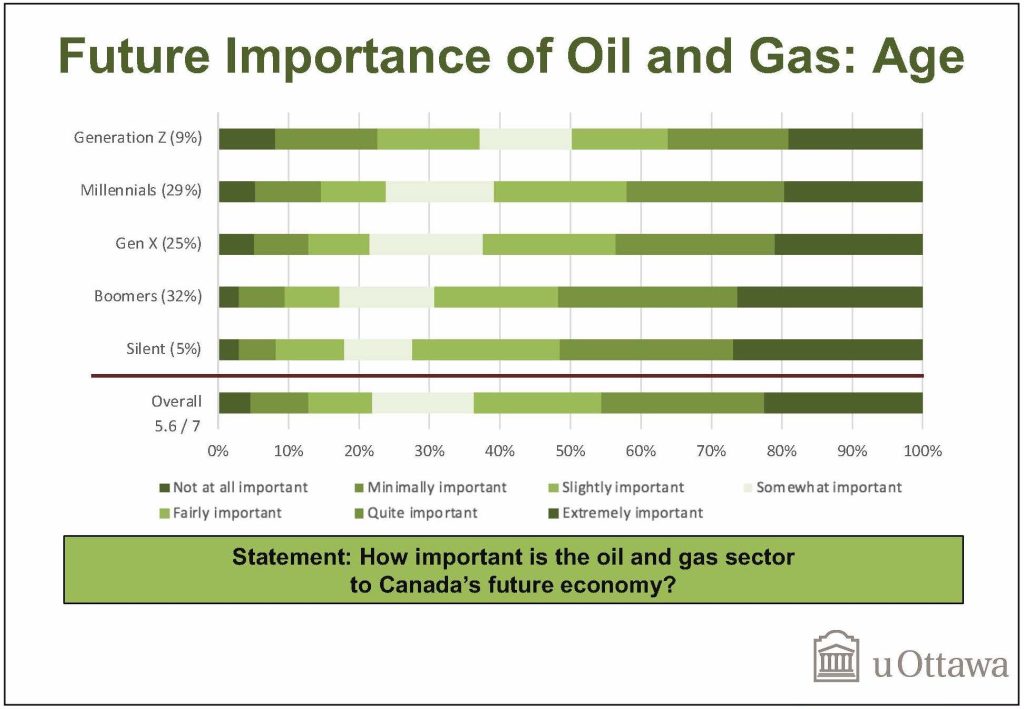 1. Age clearly makes a difference in how one sees the future of oil and gas. The majority of Generation Z may not vote today (they were born between 1996 and 2015) but they are least likely to see an important future for oil and gas. This may mean simply that youthful idealism is alive and well; but those planning the future should not ignore the divides in perception.