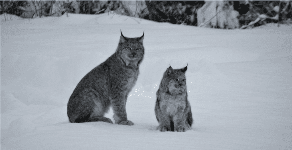 5. Lynx and her cub on the Gavin Lake Road, February 2018. Source.