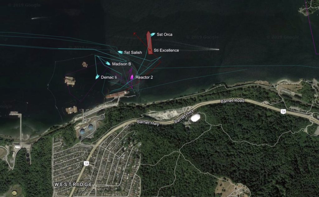 The most recent 2019 sailing was the ship STI Excellence, which is due to arrive in China on Aug. 8 with a cargo of crude oil it picked up at the Trans Mountain marine terminal in Burnaby. Marine Traffic maps show the journey.