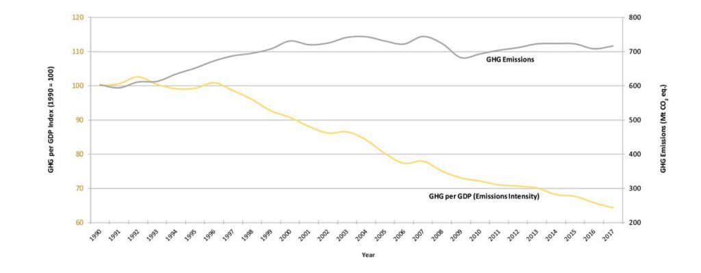 First, to understand change is achievable without sacrificing economic growth: cleaner growth is real, in fact happening here for a decade. Something the world’s smartest natural resource country might embrace.