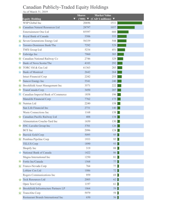 Of the top 40 publicly-traded equity holdings in the Canada Pension Plan, which is a federal retirement fund, 24 are heavily dependent on natural resources, according to an analysis by Resource Works.