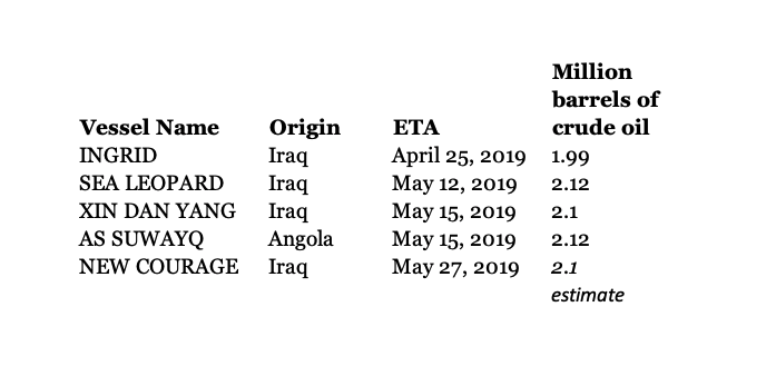 The cargoes they contain are equal to 10 per cent of the world’s entire daily consumption, or more than double the volume of Canada’s entire daily production of 4.2 million barrels. Here are the supertankers in question, and their estimated arrival times at the port of Long Beach: