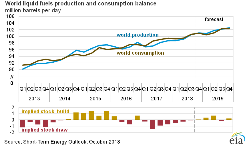 While the long-term arc of climate policy is one that plays out over many decades, the inescapable short-term fact is that world consumption of oil is going up, not down as this chart (from the U.S. Energy Information Administration) shows: