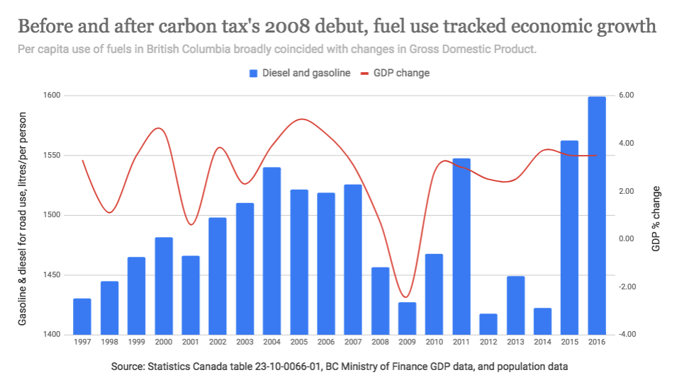 If the tax is meant to act as a brake on the use of the fuels it applies to, why has their consumption risen in British Columbia? Have we overlooked the powerful impact of economic growth in whether people and businesses vary their fuel purchases?
