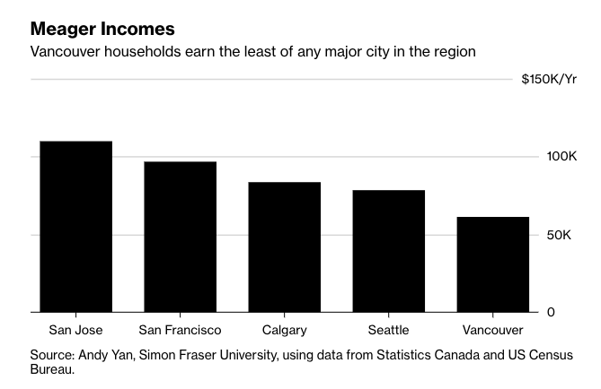 “You need one of two things: either Vancouver real estate prices need to halve to attain a certain level of affordability, or you need to double incomes,” said Andy Yan, director of Simon Fraser University’s City Program. His study accounted for the difference in buying power of a dollar across geographies and currencies.
