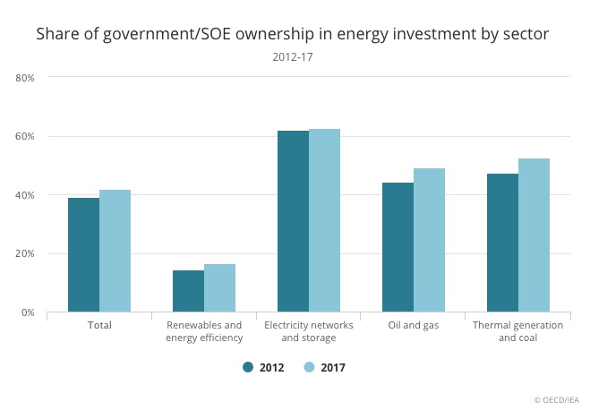 State-backed investments are accounting for a rising share of global energy investment, as state-owned enterprises have remained more resilient in oil and gas and thermal power compared with the private sector, according to the World Energy Investment 2018 report from the IEA: