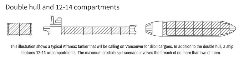 The type of tankers slated for use yield a dozen separated compartments. Even in a worst-case scenario spill, at most two compartments could be lost, experts indicate.