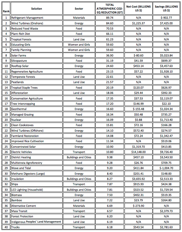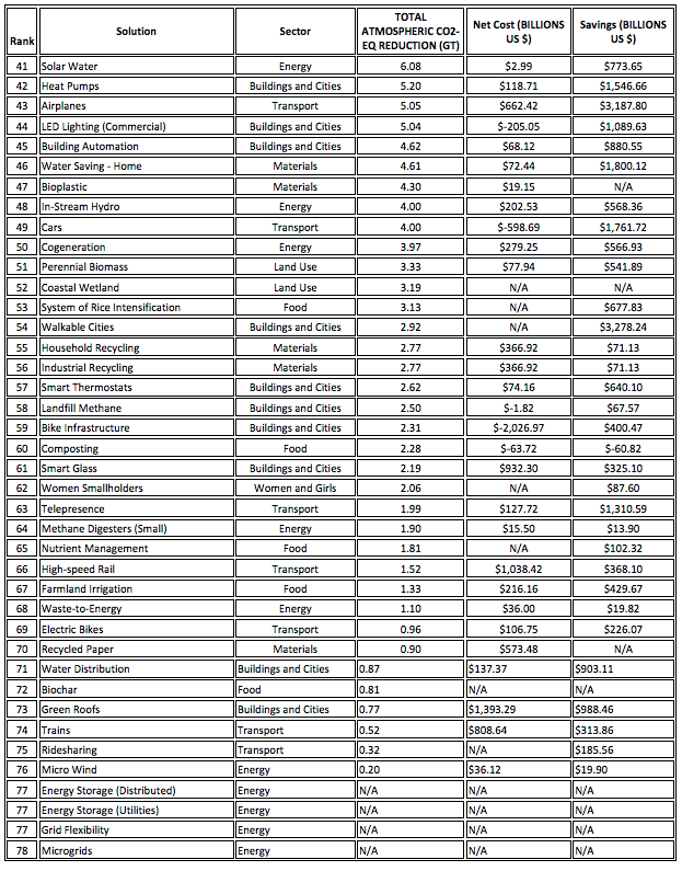 What’s striking from the list here is how many of the top-ranking solutions are ones we never hear about from governments looking for new ways to tax, er, reduce carbon. By the same token, notice how many solutions we often hear touted because they would solve major problems turn out to live down at the bottom of the list.