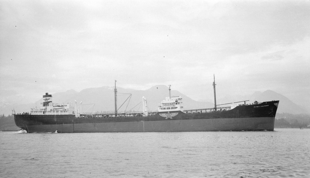 The Flying A California, the vessel which held the notable first shipment, was part of a small fleet of West Coast-based tankers owned by the Tide Water Oil Company. Tide Water was well known for its “Flying A” brand products and gas stations, as well as for Veedol motor oil. The company was owned by the famous Paul Getty who acquired it in 1953. The Flying A California was a 16,000-ton tanker manned by a crew of 40. She was one of four U.S.-built tankers added to Tide Water’s fleet in 1954. The vessel was 514 feet long with a speed of 16 knots and could accommodate 131,000 barrels. Her master for this first shipment was Captain Oscar Bengtson and the local agents for the ship were C. Gardner Johnson Co. Ltd. In 1957, the Trans Mountain pipeline capacity was expanded with the addition of a 160-kilometre loop. The Flying A California was reported to still be carrying oil products from the Westridge Terminal in 1960. At that time, it was loading 126,000 barrels bound for Portland, Oregon.