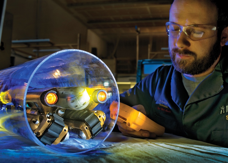 “The other thing we do really well is small,” says Dobell. “We do mobile robotics for inspection that get into very tight spaces. One of our new systems will crawl inside a two-inch pipe, which is not something we’re aware of anyone else offering.”