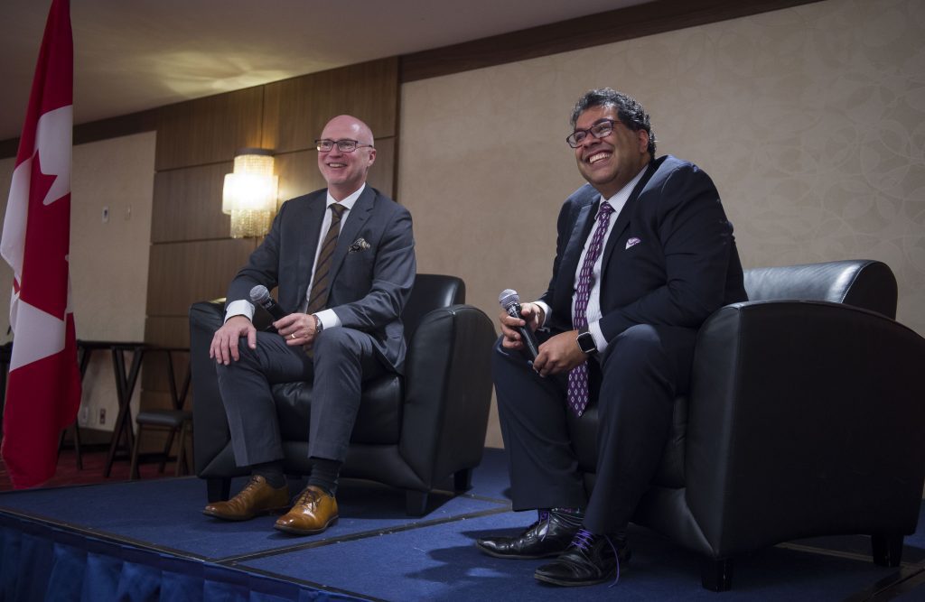 Mayor Nenshi was in Vancouver partly as a traveling salesman for his own city, which is dealing with high unemployment and commercial vacancies that have yet to hit bottom following the 2014 crash in oil prices. He’s on the road encouraging businesses to consider relocating to Calgary to take advantage, while the opportunity presents itself, of cheap rent and a skilled, available workforce.