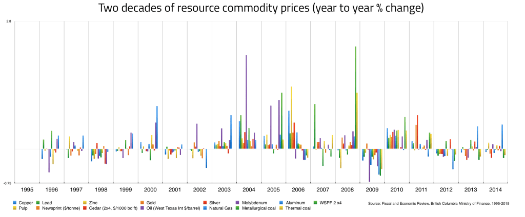 The broad economy is becoming more diverse, which is clearly beneficial. What is not often acknowledged is that the resource sector is also extremely diversified. Commodities are prone to great price swings, but there has never been a time when all BC resource groups declined in the same year (2009 was nearly the exception, but gold prices climbed during the world economic crisis). In addition, history also shows that resource prices always come back.