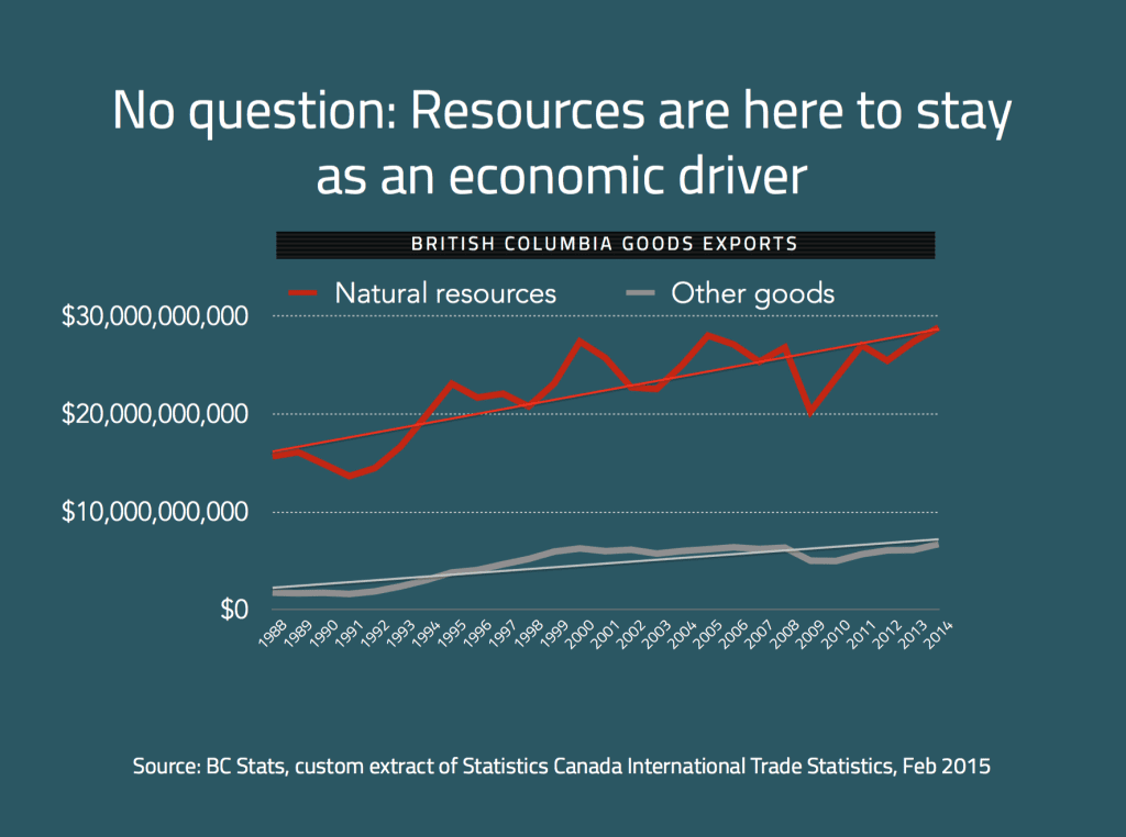 For example, a resource job in B.C.’s Peace region (where the natural gas is found) produces up to six times the impact on the economy of the average worker in the province, looking at it in terms of export value created.