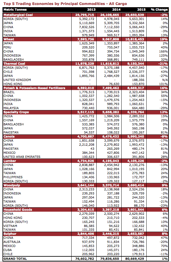Statistics for 2015 show Port Metro Vancouver experienced a slight downturn consistent with global trends, but overall strength as expected for the nation's largest port