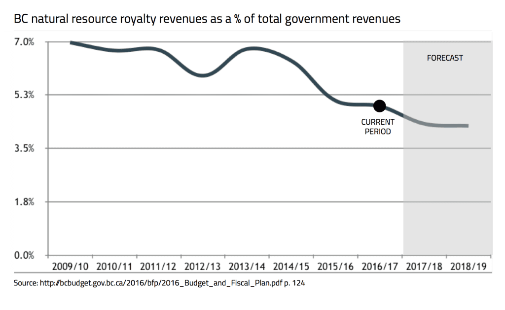 This year, royalties from all natural resource activities – including natural gas, Crown land tenures, forestry, mining and minerals, and energy – will amount to nearly 5 per cent of total government revenues.