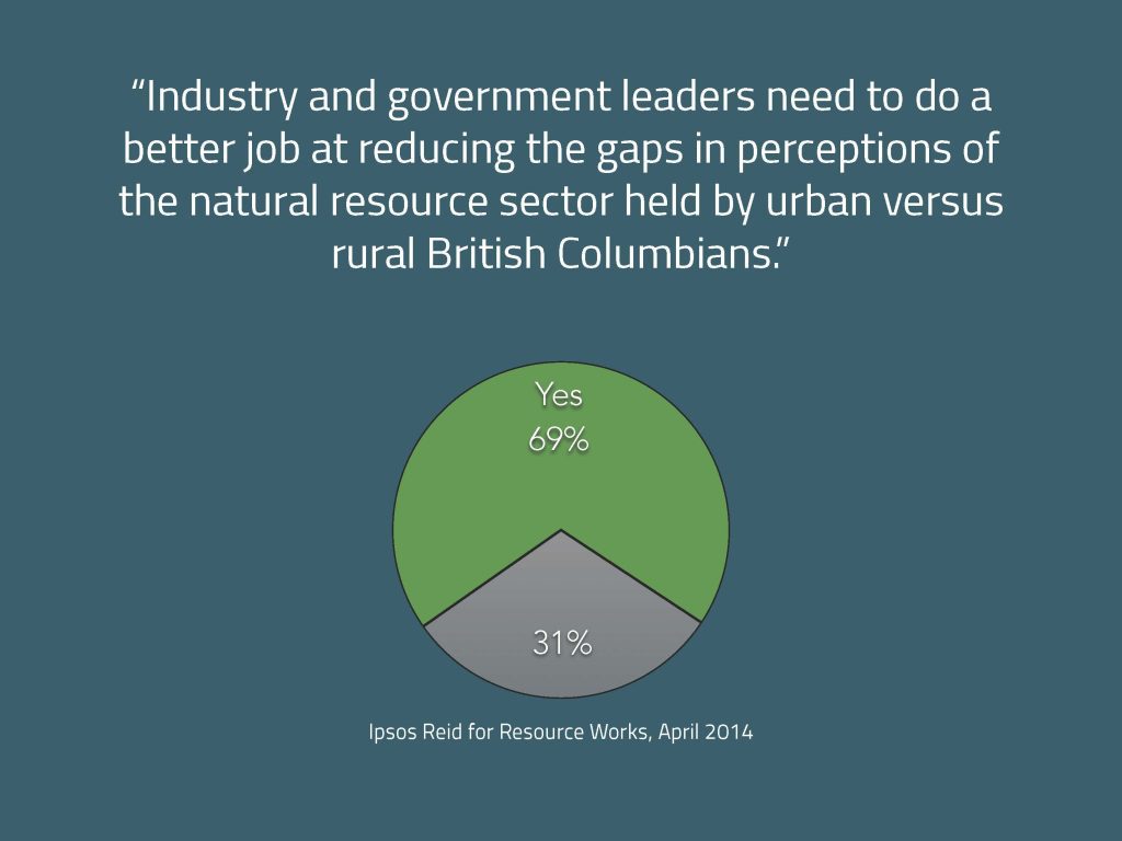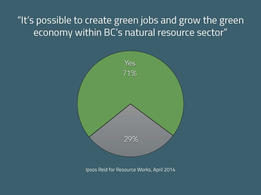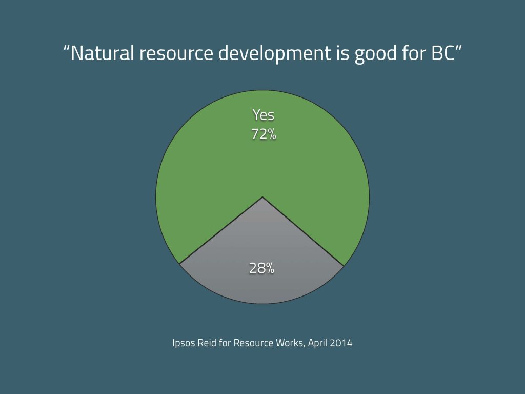 An Ipsos poll in 2014 found that 72 per cent of British Columbians agree that natural resource development is good for BC. That statement gets its broadest support in Metro Vancouver and Vancouver Island (74 per cent).