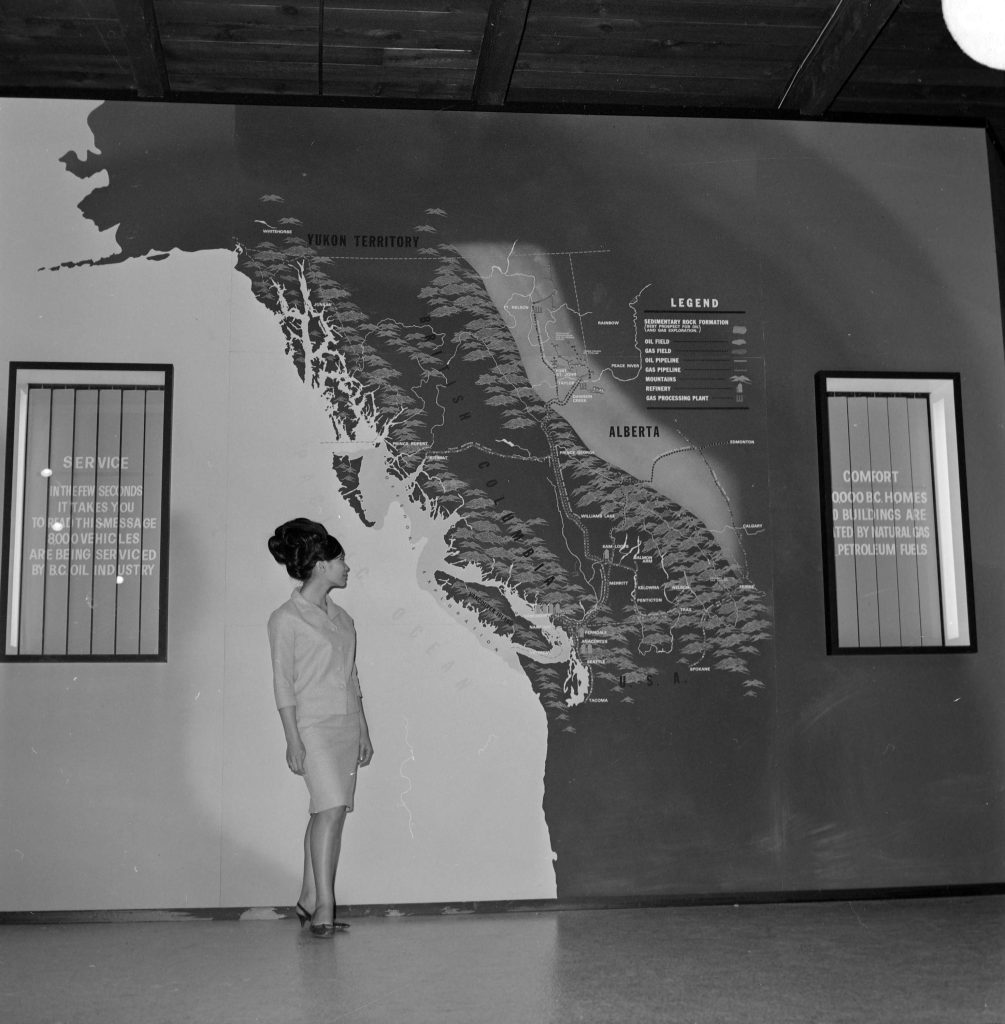 1967 was the year that telling the Vancouver public about the desirability of natural gas kicked into high gear. It was when BC’s North East was taking off as a production area for gas – as it still is today. The young woman with the glam beehive hairdo is Susan Lew, who was photographed all around the extensive gas exhibit of 1967.
