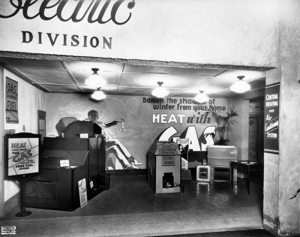 Here’s another photo from 1932, this one touting another modern marvel: air conditioning. Was there anything gas could not do? Yes, there was: come up with “poetic” slogans that made sense. “Your winter’s kindling/when you heat with gas.” Even in 1932, that stinker should have been sent back to the copywriters.