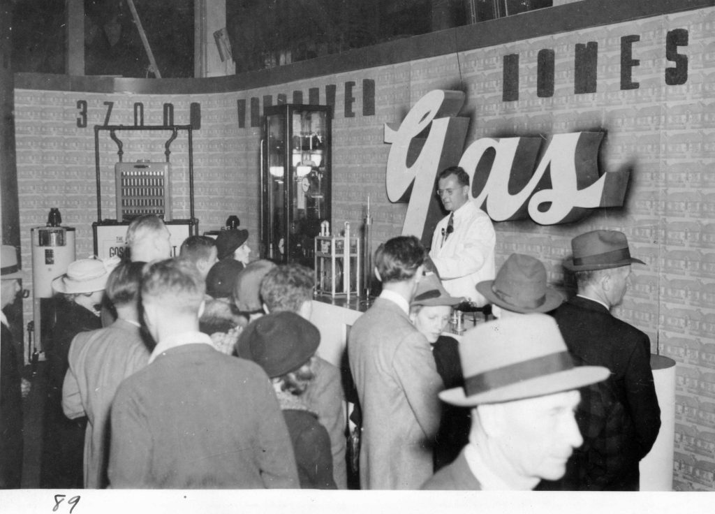 What we have here is some kind of promotional exhibit. The hot item of 1932 seems to be the gas-powered refrigerator. Somehow that does not sound like a smart way to cool your food – it’s no wonder that never caught on in the home.