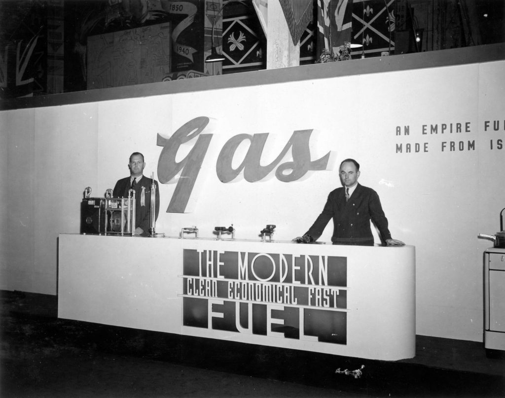 By 1940, the strategy of the gas promoters had taken a dramatic turn. No more relaxed smokers and tantalizing merchandise on display – those frivolous times were in the past because, after all, there was a war on.