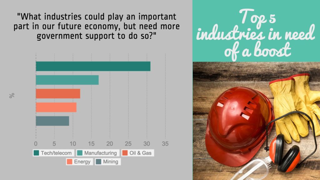 Fifty-seven per cent of those surveyed said oil will also be more important than it is now in 10 years’ time. And 51 per cent said mining will be more important to the economy than it is now a decade ahead.