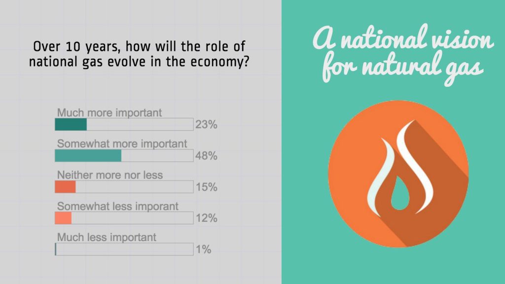 Seventy-one per cent of respondents said they believe natural gas will be more important to the economy in a decade’s time. This suggests that executives have recognized that offshore exports, which is one of the few options for gas industry growth, will take off in the form of liquefied natural gas projects on the nation’s west coast.