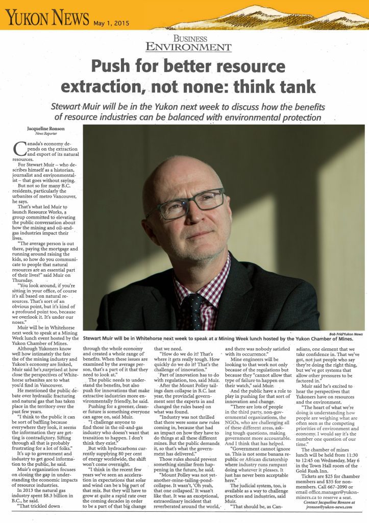 Resource Works Society executive director Stewart Muir travelled to Whitehorse to discuss natural resources with Yukon residents. The Yukon News caught up with him in advance of the visit.