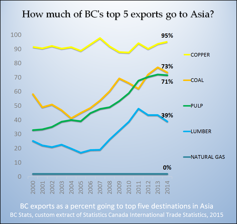 It’s also worth noting that our trade diversification has only occurred in some, but not all, of our resource commodities. You’ll notice in the chart above that there’s one item that flatlines at 0%. That’s natural gas. It’s one of our top five exports, but not a puff of it gets to our Asian trading partners.