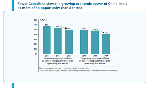 Canadians have also become more convinced that the rising economic power of India and China poses a threat rather than an opportunity.