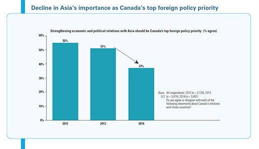 And finally, there’s been a dramatic decline in the proportion of Canadians who feel developing ties with Asia should be our country’s top foreign policy priority.
