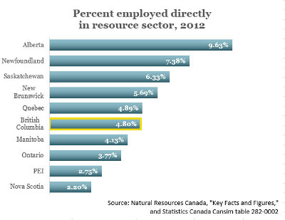 At the provincial level, however, the study only counts those people who are directly employed in the resource sector and not those in other industries who support them. Still, it’s worth a look.