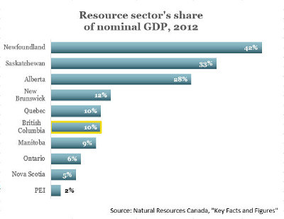 Overall, these numbers suggest the natural resource sector is currently a crucial part of BC’s economy, and signs point to it becoming much bigger soon. But the resource sector does not dominate our economy to the extent it does in Alberta, Saskatchewan or Newfoundland – at least not yet.