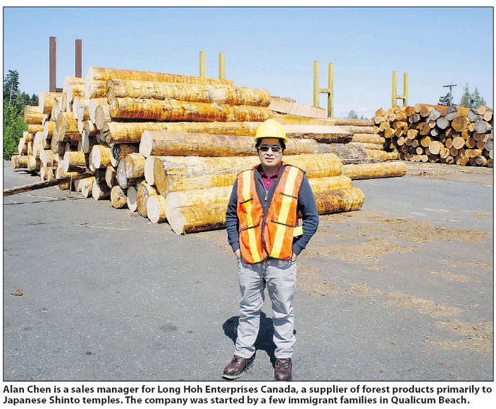 Alan Chen: In the beginning, some immigrant families came here to try to continue their expertise in wood processing and making building components. They acquired land (at Qualicum Beach) and built from scratch. In 1997, the sawmill opened for business. They chose the location because of its proximity to the required resources, which are the logs.