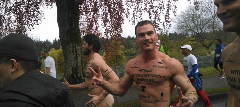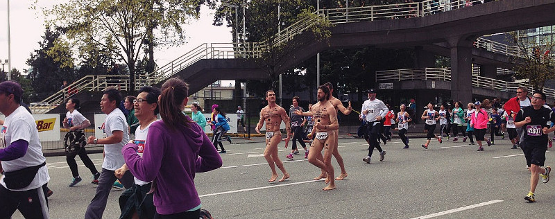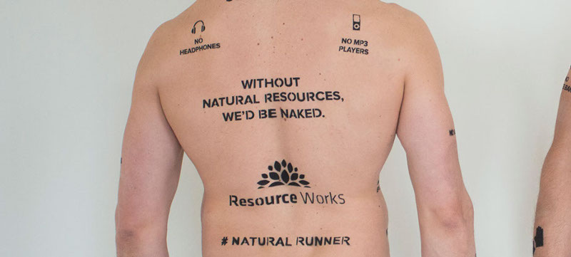 Adorned with temporary tattoos containing factoids about BC’s resource sector, the athletic runners joined the throngs of runners at the Sun Run, maintaining only a modicum of their modesty.